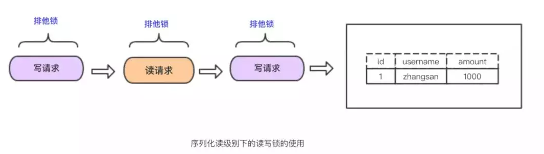 - 排他锁(exclusive lock),又叫做"写锁",写锁会排斥其他所有获取锁的请求,一直阻塞,直到写入完成释放锁。