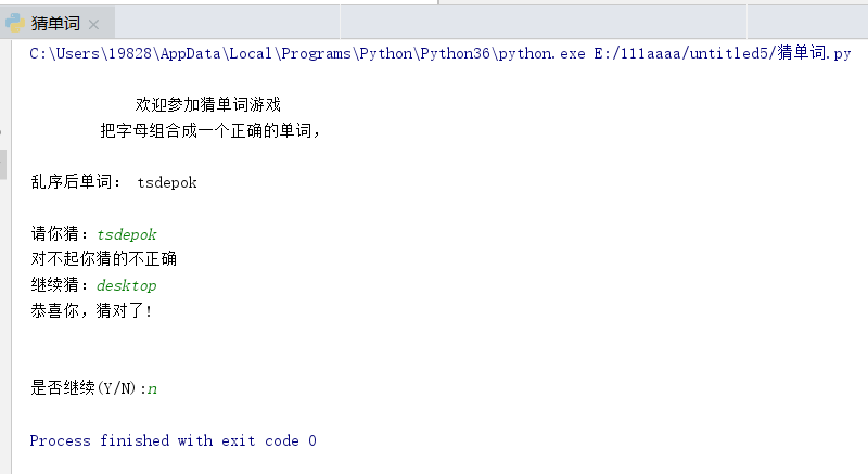 print("乱序后单词:",jumble)