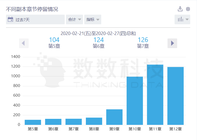 为了验证猜测是否正确,通过数据分析平台查询了下这批玩家中副本的通关情况。通过以下数据可以看出,虽然不至于所有玩家都停留在最后一章,但大多数人已经接近终点,新的副本玩法开发已经迫在眉睫了。