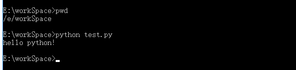 在python交互式环境中输入python代码是练习使用的,实际开发过程中编写的代码肯定需要保存,我这里新建一个.py扩展名结尾的python文件,路径:E:\workSpace\test.py。在cmd中执行该文件如下
