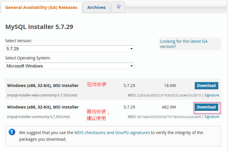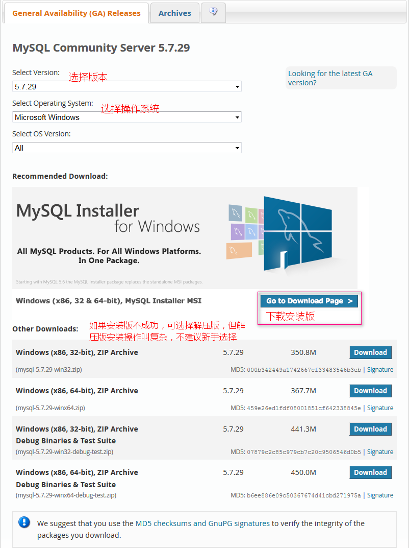 MySQL-5.7.29下载地址:http://dev.mysql.com/downloads/mysql/