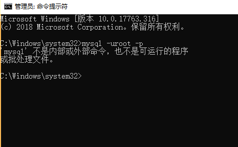 如果出现如下错误,则需要配置MySQL的环境变量