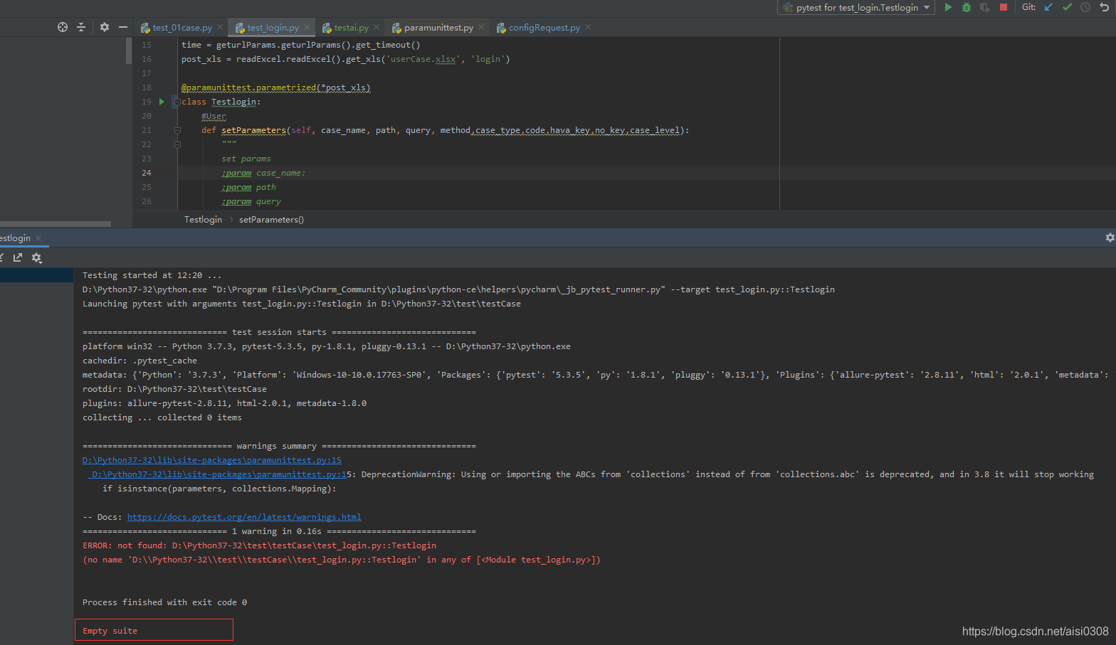 写完用例后,右键执行run 'pytest for XXX'本程序,出现Empty suite;执行用例实好实坏,有时可正常执行