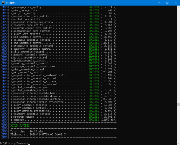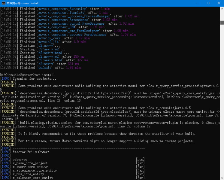 2、在o2server目录下直接执行命令进行编译:mvn install,开始进行源码编译: