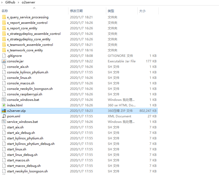 目录:o2oa/o2server/o2server.zip, COPY到其他目录,解压后可以执行o2server目录下的启动脚本运行服务器(需要管理员权限)。如下图所示: