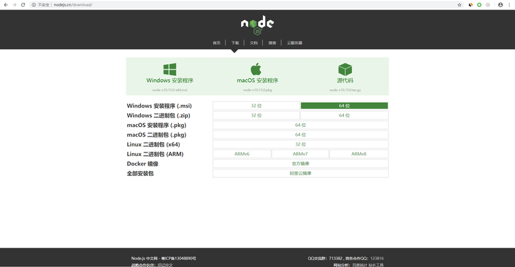 nodejs下载地址:http://nodejs.cn/download/ (您也可以从官网下载:https://nodejs.org/en/)