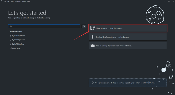 2、打开Github Desktop客户端,从自己的github仓库中clone源码