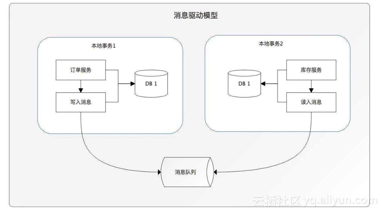 消息一致性方案是通过消息中间件保证上下游应用数据操作的一致性。基本思路是将本地操作和发送消息放在一个事务中,下游应用向消息系统订阅该消息,收到消息后执行相应操作。本质上是依靠消息的重试机制,达到最终一致性。消息驱动的缺点是:耦合度高,需要在业务系统中引入MQ,导致系统复杂度增加。