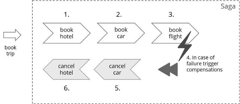 他们的执行顺序如上图所示,所以当发生失败时,会依次进行取消的补偿操作。