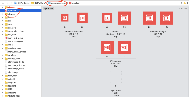 还有就是项目的LOGO,这个LOGO是在IOS手机桌面上显示那个图标,找到Assets资源目录,替换AppIcon里面的图片。如下图: