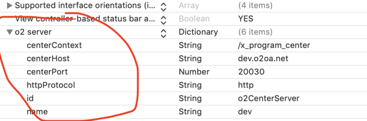 然后找到O2Platform 目录下找到Info.plist文件,把里面的centerHost 、 centerPort、httpProtocol改成你们自己的O2OA中心服务器地址信息。