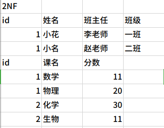 第一个表里面的码只有ID一个,非主属性就是姓名,班主任,班级,他们完全依赖主属性。这个是符合2NF要求的。