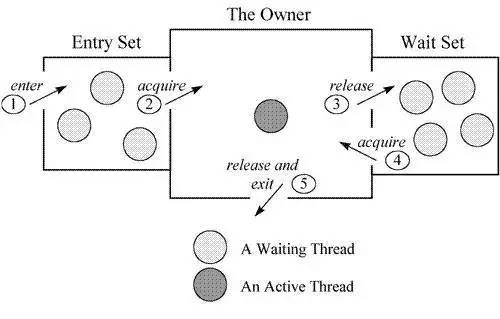 拥有监视者对象的线程可以调用 wait() 进入等待集合(Wait Set),同时释放监视锁,进入等待状态。