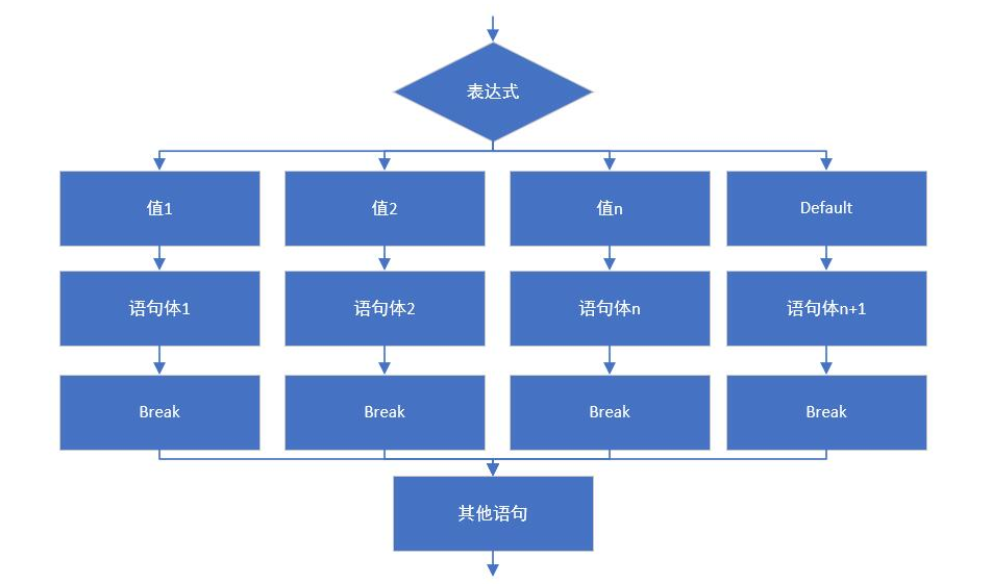 o 最后,如果所有的case都和表达式的值不匹配,就会执行default语句体部分,然后程序结束掉。