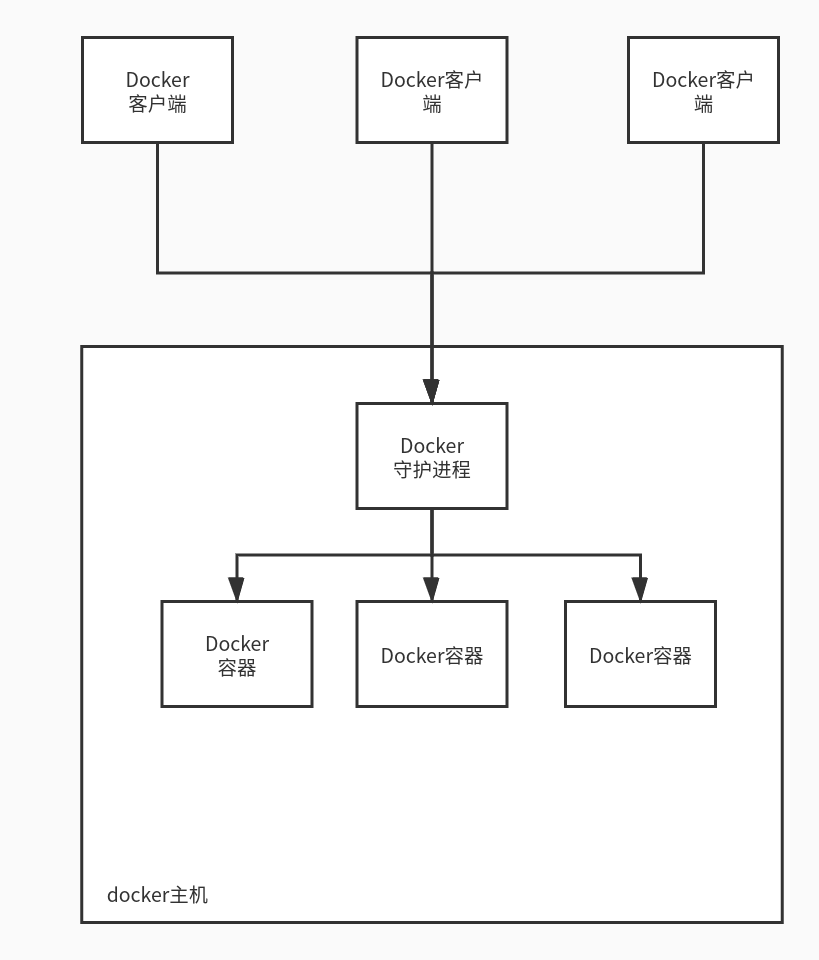 Docker是一个客户端-服务器(C/S)架构程序。Docker客户端只需要向Docker服务器或者守护进程发出请求,服务器或者守护进程将完成所有工作并返回结果。Docker提供了一个命令行工具Docker以及一整套RESTful API。你可以在同一台宿主机上运行Docker守护进程和客户端,也可以从本地的Docker客户端连接到运行在另一台宿主机上的远程Docker守护进程。