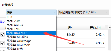 以上图所示:1、此处需要选择:瓦片:BIGEMAP;后面的网片格式选择png、jpg都可以。