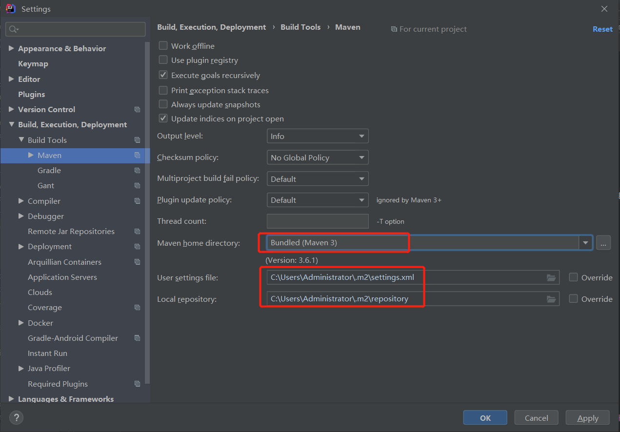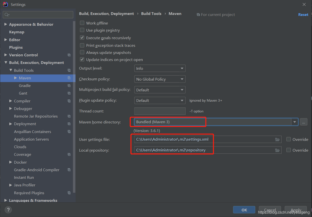 User settings file :用户配置文件,默认是 C:\Users\Administrator\.m2\settings.xml