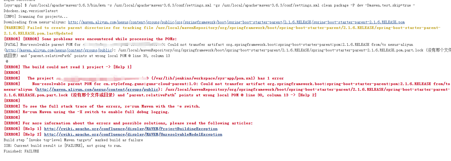 使用jenkins构建时提示如下错误,原因是maven仓库的权限不够,解决办法增加文件夹权限: chmod 777 maven仓库路径 如: chmod 777 /usr/local/mavenRepository/ 来源:CSDN作者:菜菜菜菜菜鸡链接:https://blog.csdn.net/qq_24084605/article/details/104777440 标签 Jenkins chmod