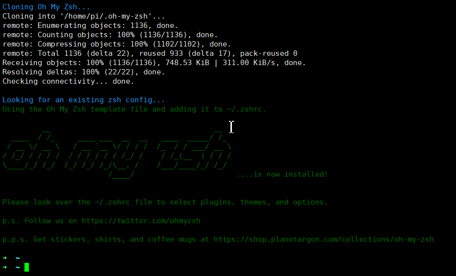 $ sh -c "$(wget https://raw.github.com/ohmyzsh/ohmyzsh/master/tools/install.sh -O -)"