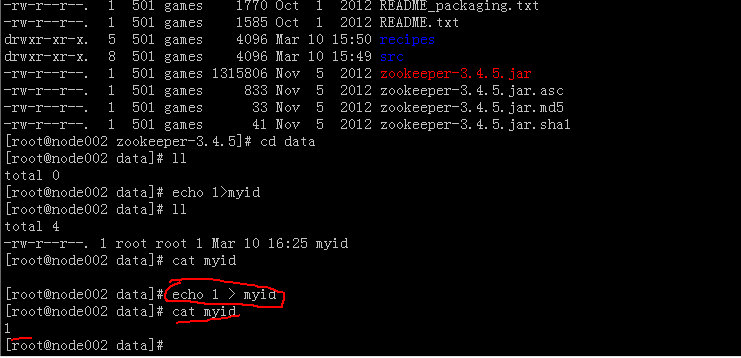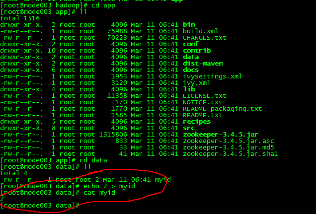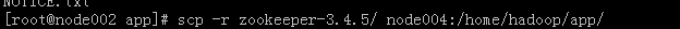 6.把已经安装好的zookeeper复制到node002,node003中,注意修改data下的myid