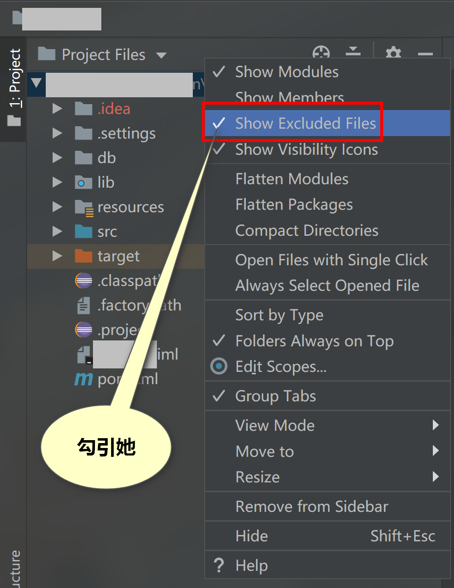 我猜测可能是:我的不显示的原因是因为我使用myeclipse读取的idea工作目录下的项目,然后断开svn,然后分享到svn,分享的时候我特意去掉了target文件夹,导致整个工作空间中,只有target是不跟svn有关系的文件夹,可能idea自动把这类文件给屏蔽掉了,不展示了。