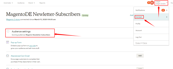三、返回Mailchimp确认,当前使用哪个 Audience 同步
