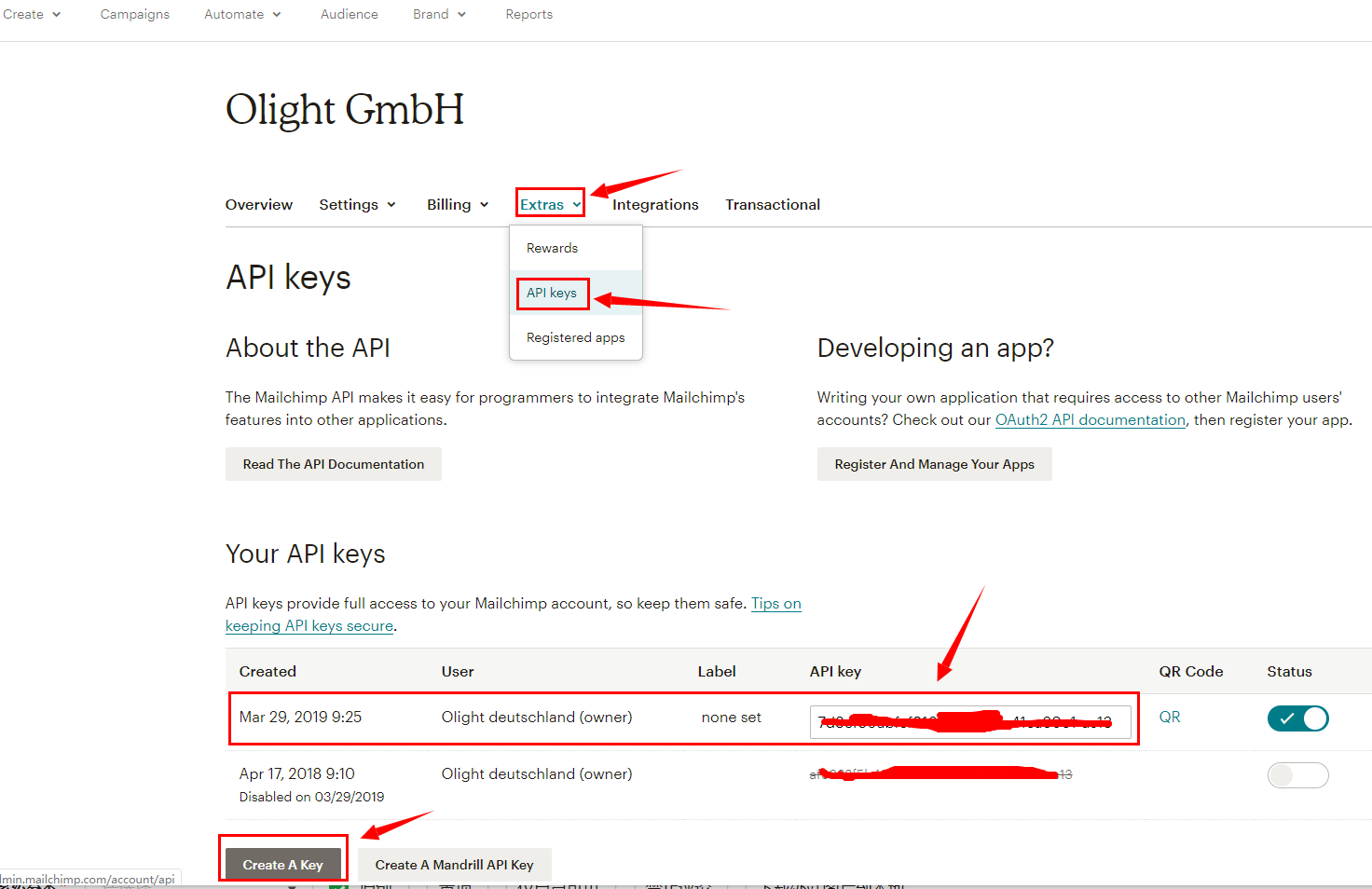 一、登录Mailchimp找到其Api Keys