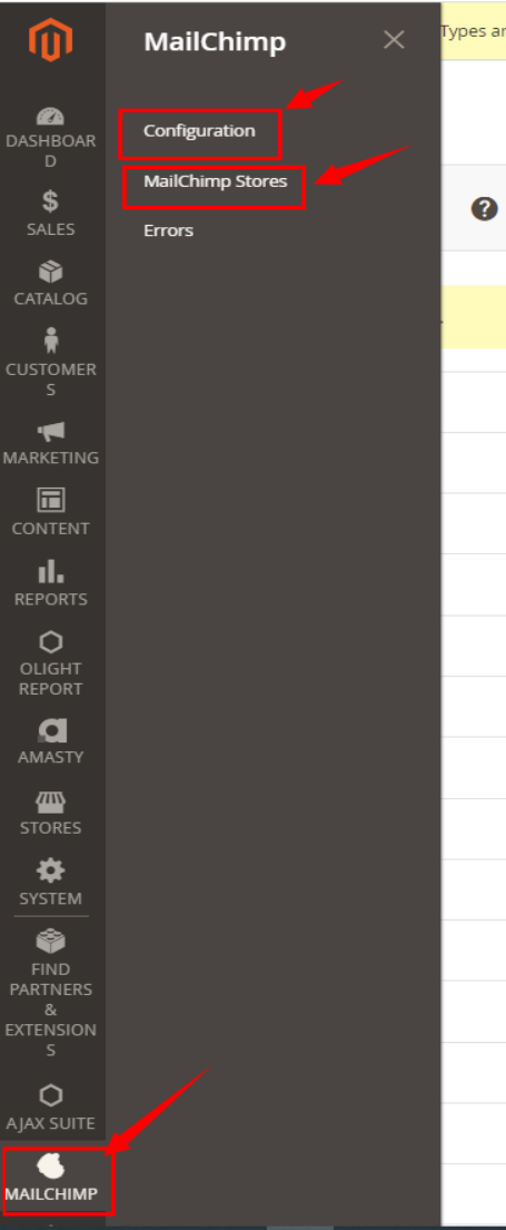 2、点击打开“MailChimp Stores”页面,创建 mailchimp store