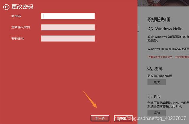 这时又会跳出一个窗口,要求你输入【新密码】【重新输入密码】【密码提示】,这些都不要管,直接点击下一步。
