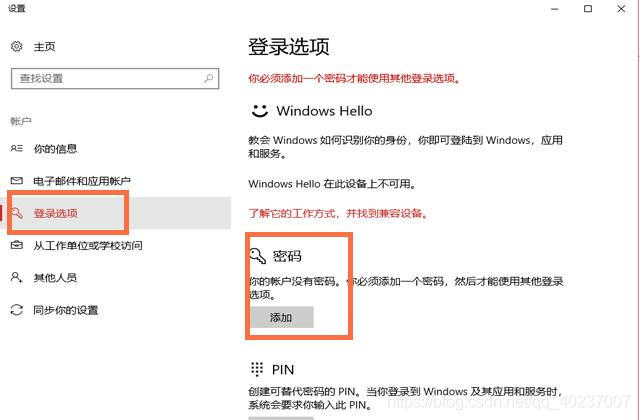最后在【密码】那边看会出现【添加】这两个字,就代表开机的时候不用输入密码啦,这样就解开了。