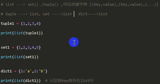 可变类型: 字典dict 列表 list 集合