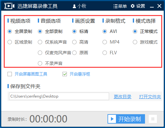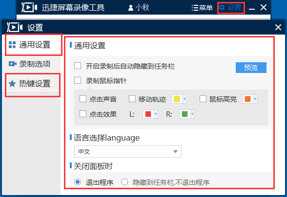 除自带录屏外还可以用迅捷屏幕录像工具等专业录屏软件进行录制,打开录制软件后在首行菜单栏的设置选项调整屏幕录制时工具面板和鼠标指针所处状态。