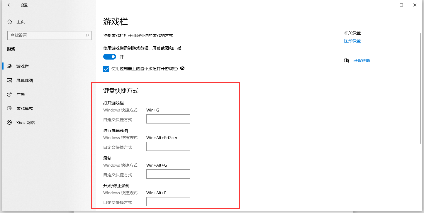 如果想调整录制的各种快捷键也可以进入系统设置的游戏栏进行修改。