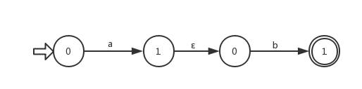 1' NFA图由两个NFANode组成,一个表示NFA图的头节点,一个表示NFA图的尾节点,各种运算符操作都是在原先的NFA图的首尾节点上进行操作的,而对NFA内部的节点并没有影响,故此结构 设计具有其合理性;