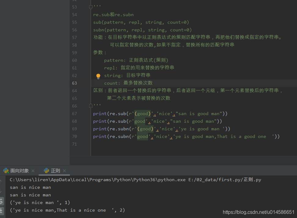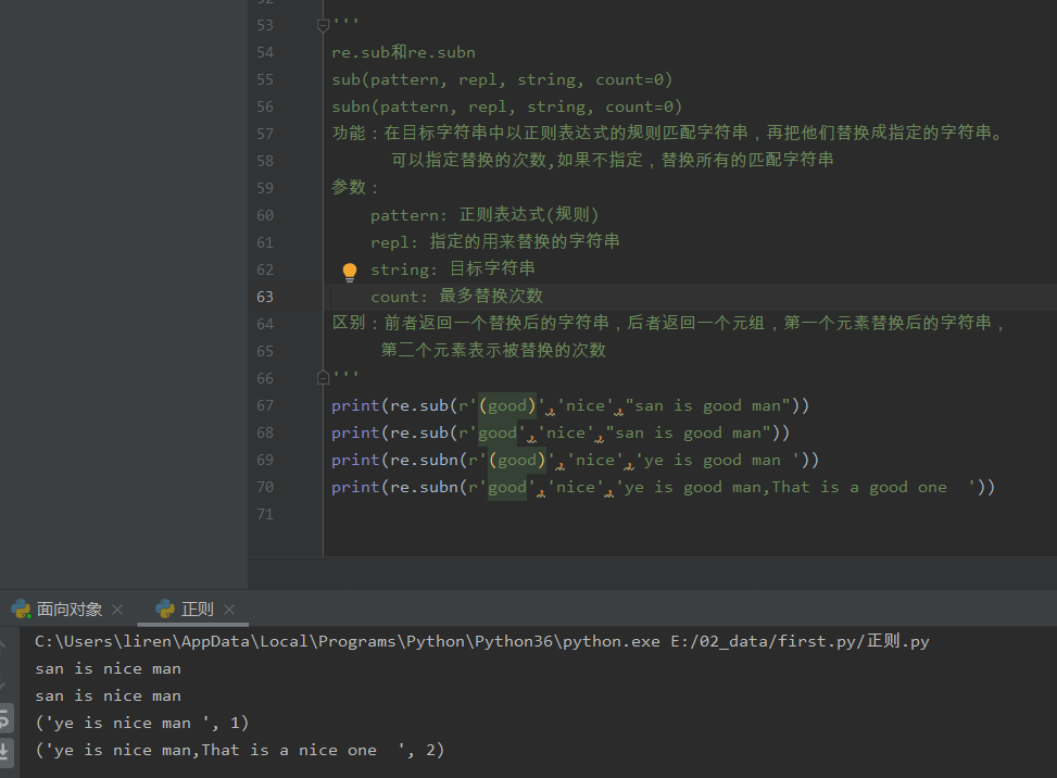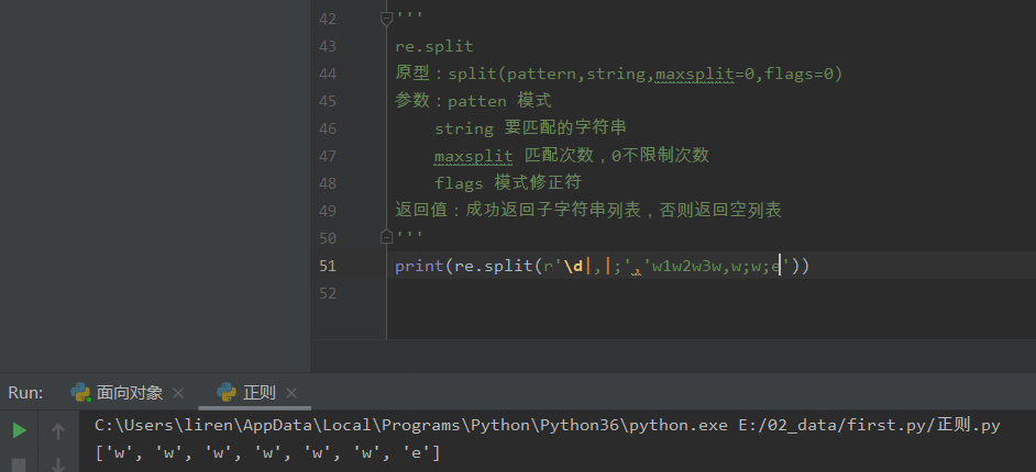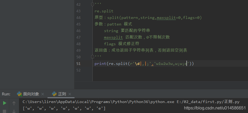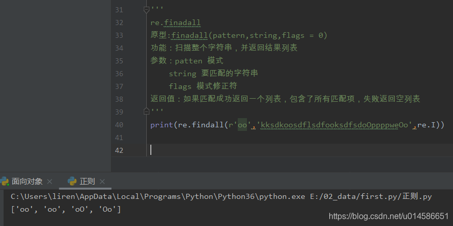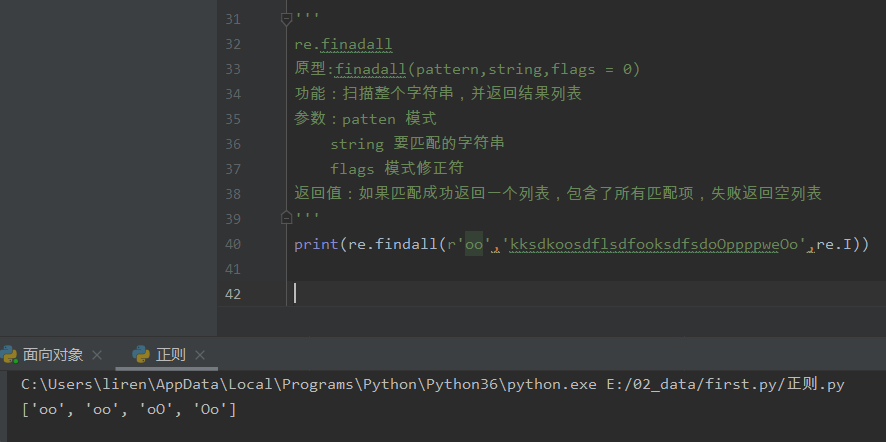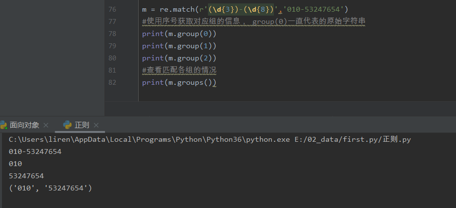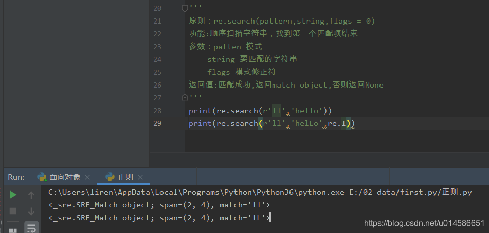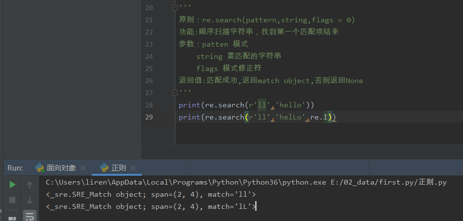 当我们使⽤正则表达式时, re模块会⼲两件事