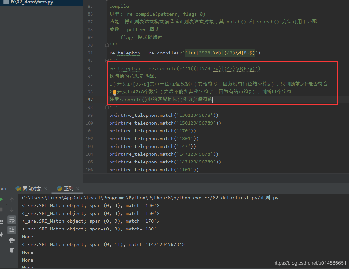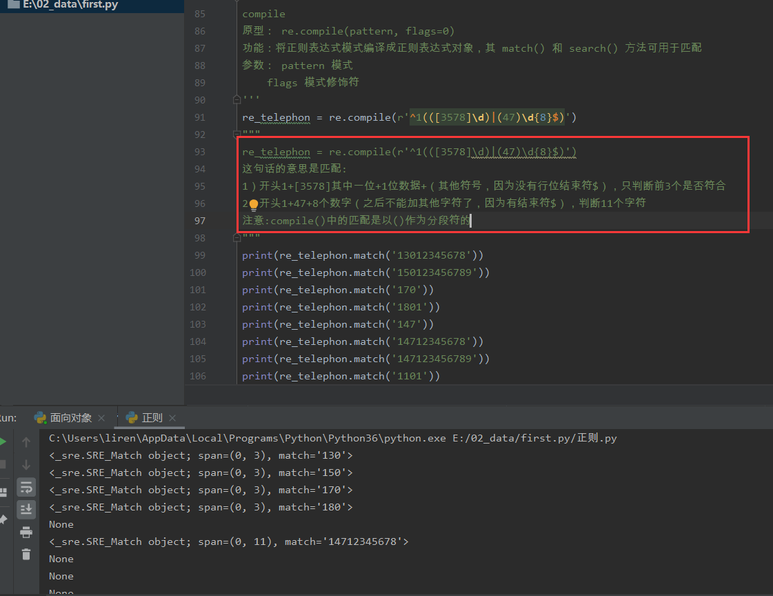 1、编译正则表达式,如果正则表达式本身不合法,会报错