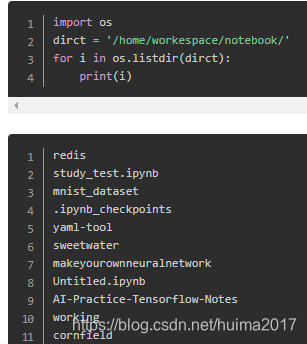 os.listdir()方法,此方法返回一个列表,其中包含有指定路径下的目录和文件的名称