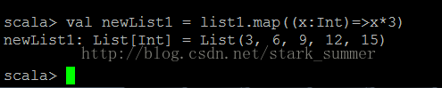 x表示l中每一个元素,map对l中的每一个元素进行遍历操作,由于List中只有一种类型的元素,所以我们在执行马屁操作的时候可以省略其类型,如下所示: