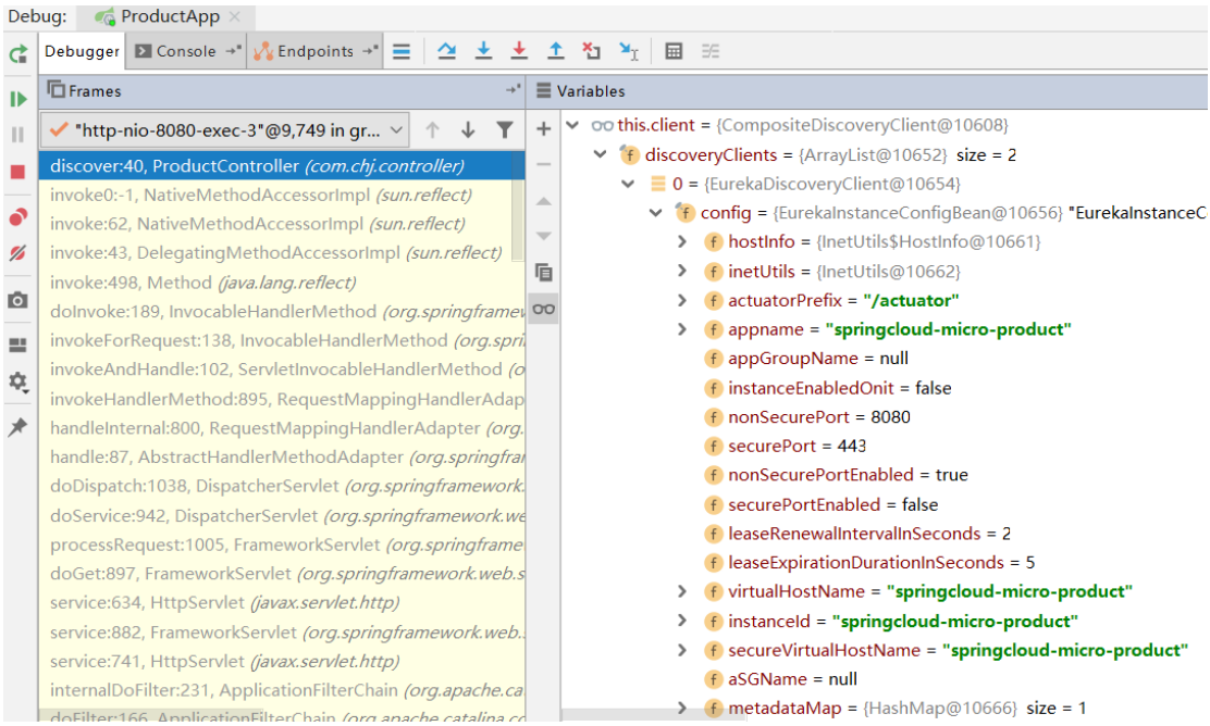 Debug可以发现DiscoveryClient包含的很多信息: