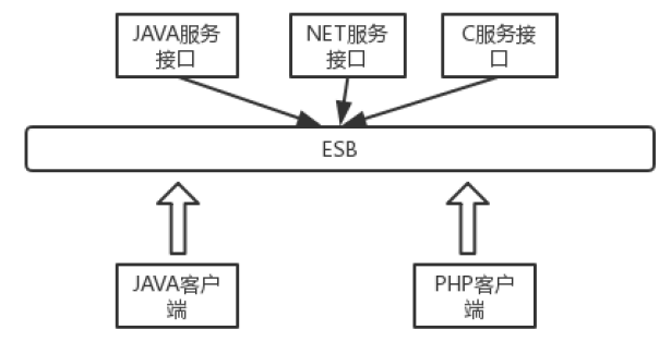 这ESB类似于设计模式里面适配器模式,不管服务提供方是使用什么语音实现的,在他注册到消息总线里面,用过使用同样的一套规范,这样客户端调用就省事了很多。