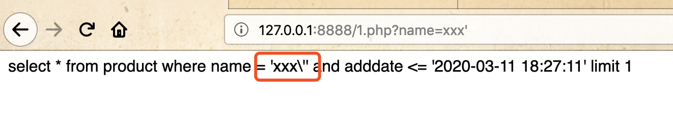 由于函数处理了$name所以直接单引号是不能被注入的,如图