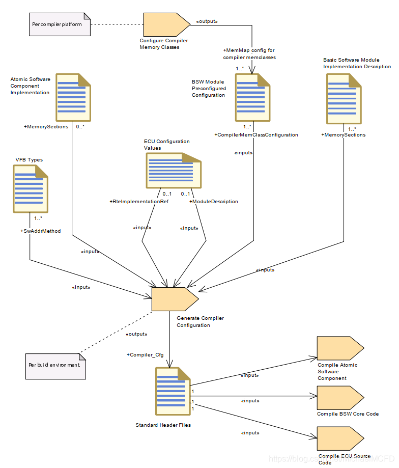 使用AUTOSAR可以从XML工件派生(即生成)这些头文件的内容。这个用例显示了所需的工件和任务是如何相关的。