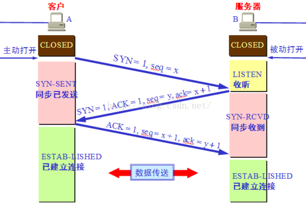 第二次握手:主机 B 收到请求后要确认联机 信息,向 A 发 送 ack number=( 主机 A 的