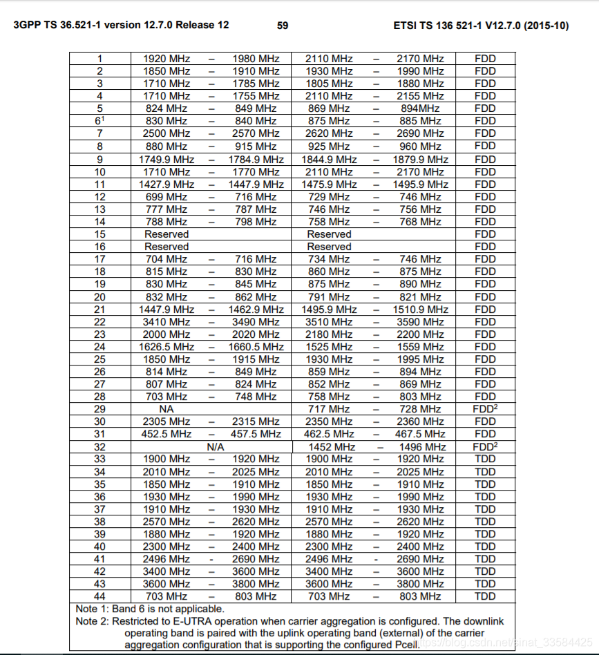1.LTE分为FDD和TDD的制式,从B33开始为TDD的频段资源,各个band划分如下: