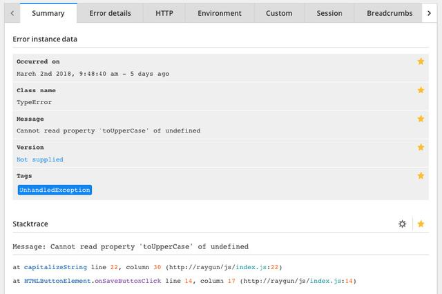 Raygun提供的错误报告有很多信息可用于查找和修复错误,所以我们来看看我们正在处理的内容。
