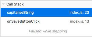 堆栈跟踪会告诉您错误发生的位置以及导致该错误发生的函数调用的顺序。正如你在上面的屏幕截图中看到的,错误发生在文件capitalizeString第20行的功能上index.js。