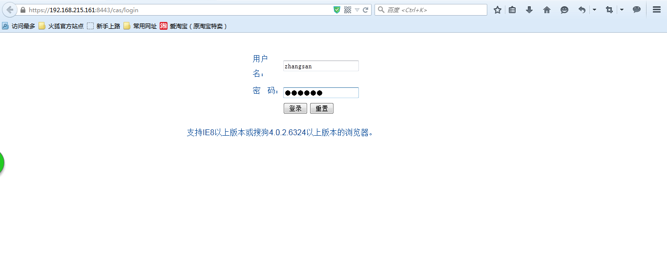 输入 https://me.com:8443/cas/login,如果提示https连接失败,尝试将证书导入到浏览器中。