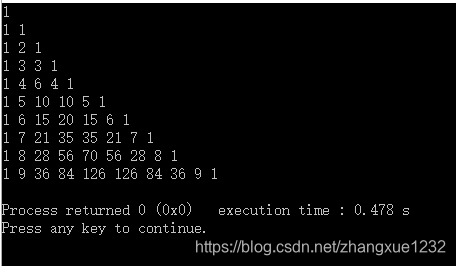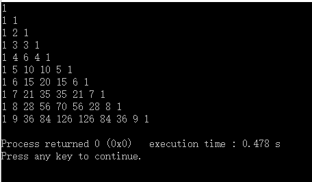 a[i][j]=a[i-1][j]+a[i-1][j-1];