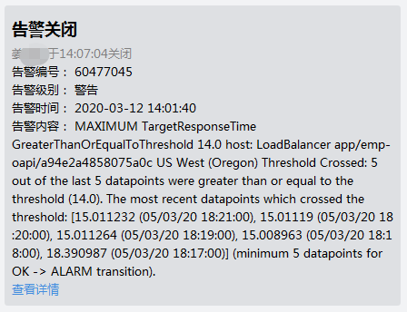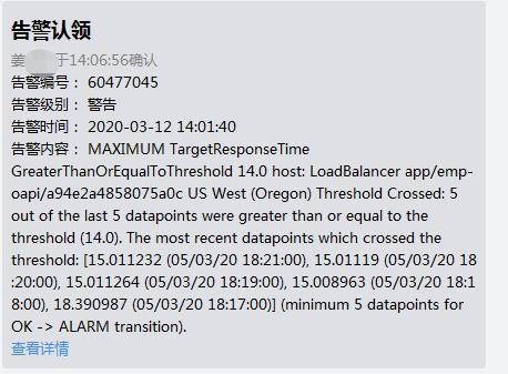 以上操作完成后,便完成了企业微信告警的通知方式设置,产生告警后会看到以下效果: