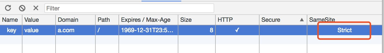 现在将该 cookie 改为 SameSite = Strict,如下: